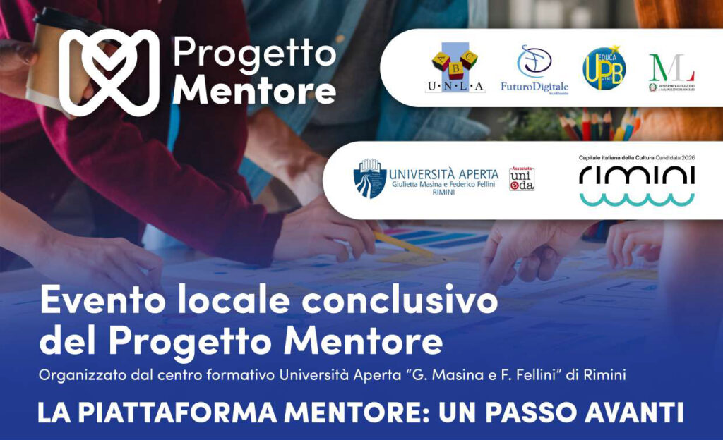 Il Progetto Mentore torna a confrontarsi con gli attori dell’Emilia-Romagna. L’Università Aperta “G. Masina e F. Fellini” di Rimini offre la possibilità di un incontro nell’ambito del quale saranno presentate le novità e i numeri di questo periodo sperimentale della Piattaforma Mentore. Nell’ambito dell’Evento conclusivo locale saranno evidenziate le possibilità di visibilità offerte dallo strumento […]