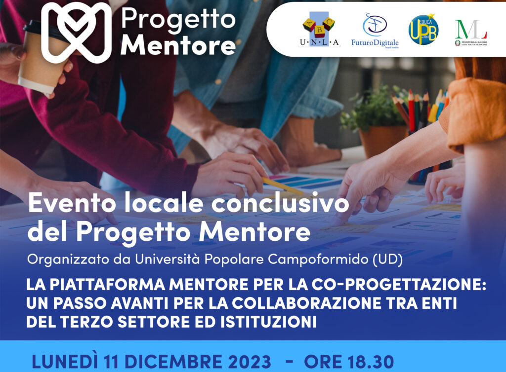 Gli attori del Friuli-Venezia Giulia tornano a confrontarsi con il Progetto Mentore. L’Università Popolare di Campoformido (UD) organizza l’incontro per consentire ai referenti nazionali del Progetto di presentate le novità, i numeri e la continuità della Piattaforma Mentore. Nel corso dell’Evento locale saranno evidenziate le nuove possibilità di visibilità offerte dallo strumento (Reti e Buone […]