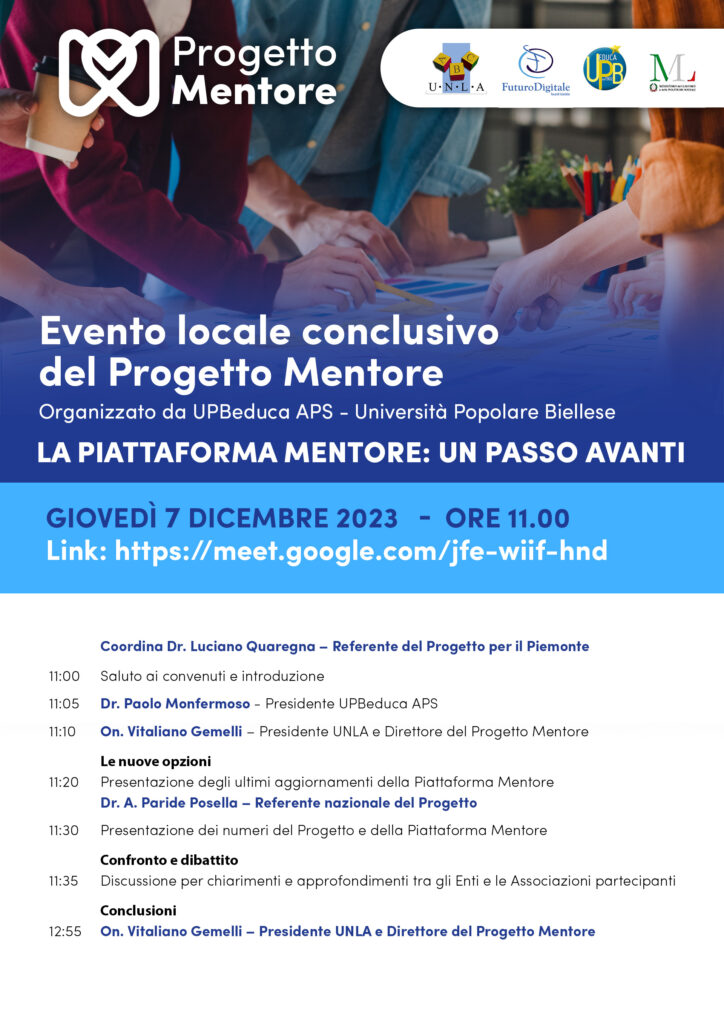 Grazie alla collaborazione di UPBEduca della Sede di Biella, Enti del Terzo Settore, Enti Pubblici e altri attori coinvolti con il Terzo Settore potranno conoscere meglio la Piattaforma Mentore in termini di continuità, di novità e di opportunità offerte, soprattutto per la maggiore visibilità nonché possibilità di avviare proprie iniziative (progetti, eventi formativi, promozione, informazione).