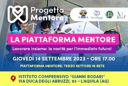 L’Animazione torna in Abruzzo. Nei giorni 14 e 15 settembre i referenti nazionali del Progetto saranno a L’Aquila per confrontarsi con ETS ed Enti Pubblici. L’incontro “La Piattaforma Mentore: Terzo Settore in Rete” è organizzato dai CCEP UNLA di L’Aquila e di Ocre, in collaborazione con l’Istituto Comprensivo “Gianni Rodari” de L’Aquila.