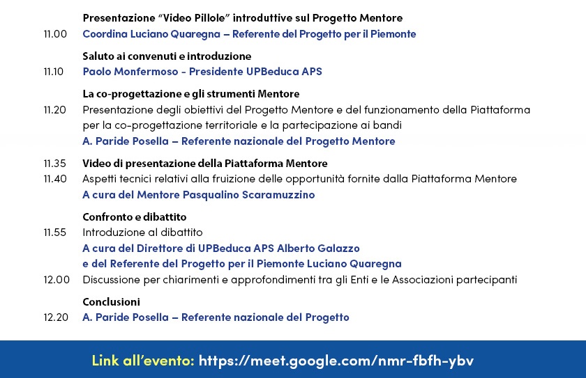 Continua la diffusione nei territori dell’aggiornamento della Piattaforma Mentore. Grazie alla preziosa collaborazione dell’Associazione AIDEA APS di La Spezia, i referenti Mentore avranno la possibilità
